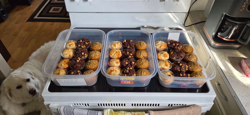 Making a full dozen of one type of muffin is problematic for Dan and I, so I made a variety pack to share with Jen & family and Genie & Alec. 💗