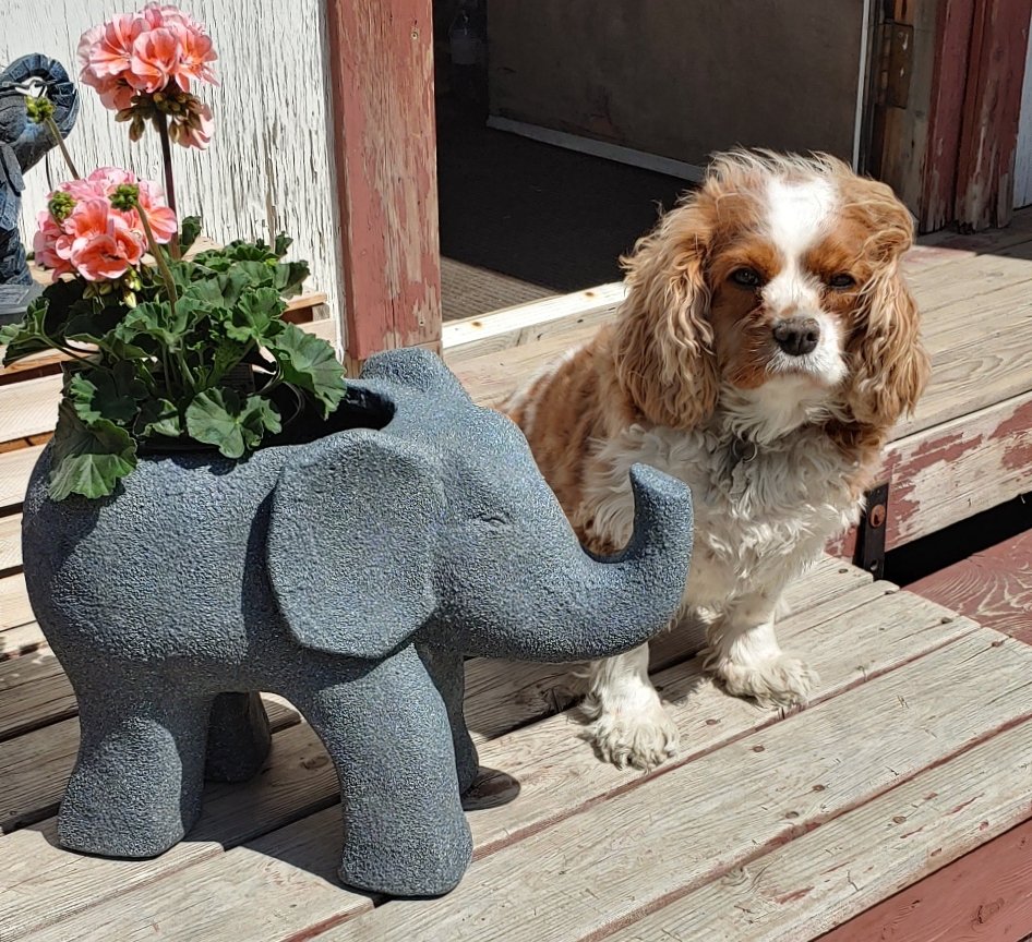 On the way home he stopped at the Co-op home centre and picked up a new yard elephant. I think Kat likes it. π