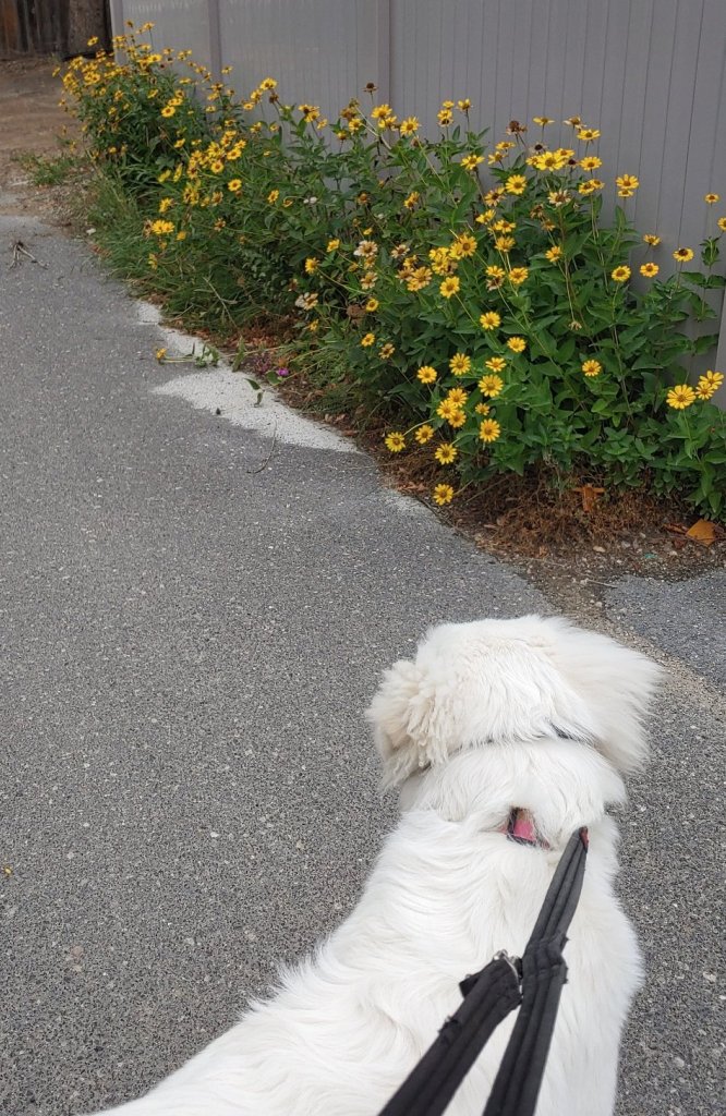 Our weather is overcast today and a few degrees cooler than it has been. Other than the adorable GoldenDoodle that Molly got to play with on our walk this morning, our neighbourhood seems to be just a little gloomy.
