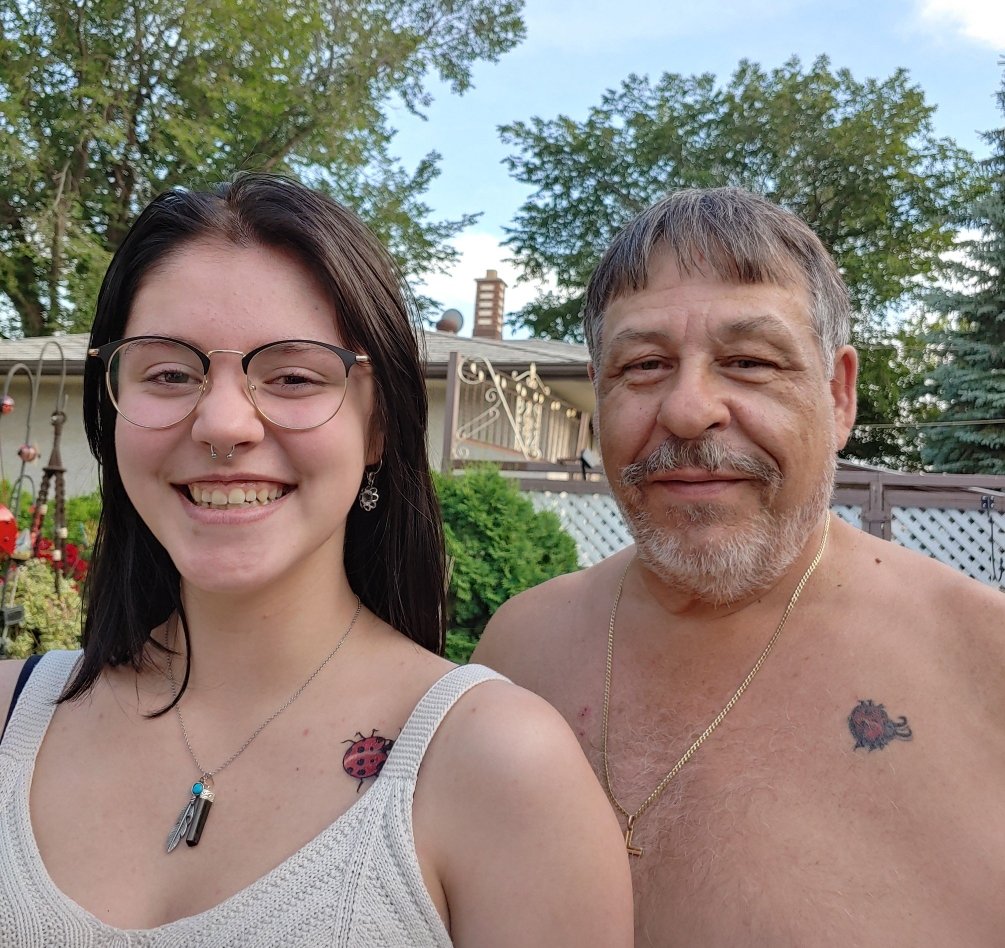 And my favourite for the week! Grandpa’s little ladybug is still playing with ladybugs. She was very excited that it landed on her cheek and then flew into her hand.Genie loved ladybugs so much when she was a tot, that when she was nine years old, Dan got a tattoo of a ladybug on his shoulder. He wanted her to know that no matter how big she got, he would always havea shoulder readyfor her if she ever needed it. Genie always said that as soon as she was old enough, she would get one on her shoulder for Grandpa. Due to the pandemic, there was no getting her tattoo on her sixteenth birthday so she was pretty excited when the parlours reopened a few months later and she could come over to show Grandpa that they finally had matching ladybugs. 🐞🐞
