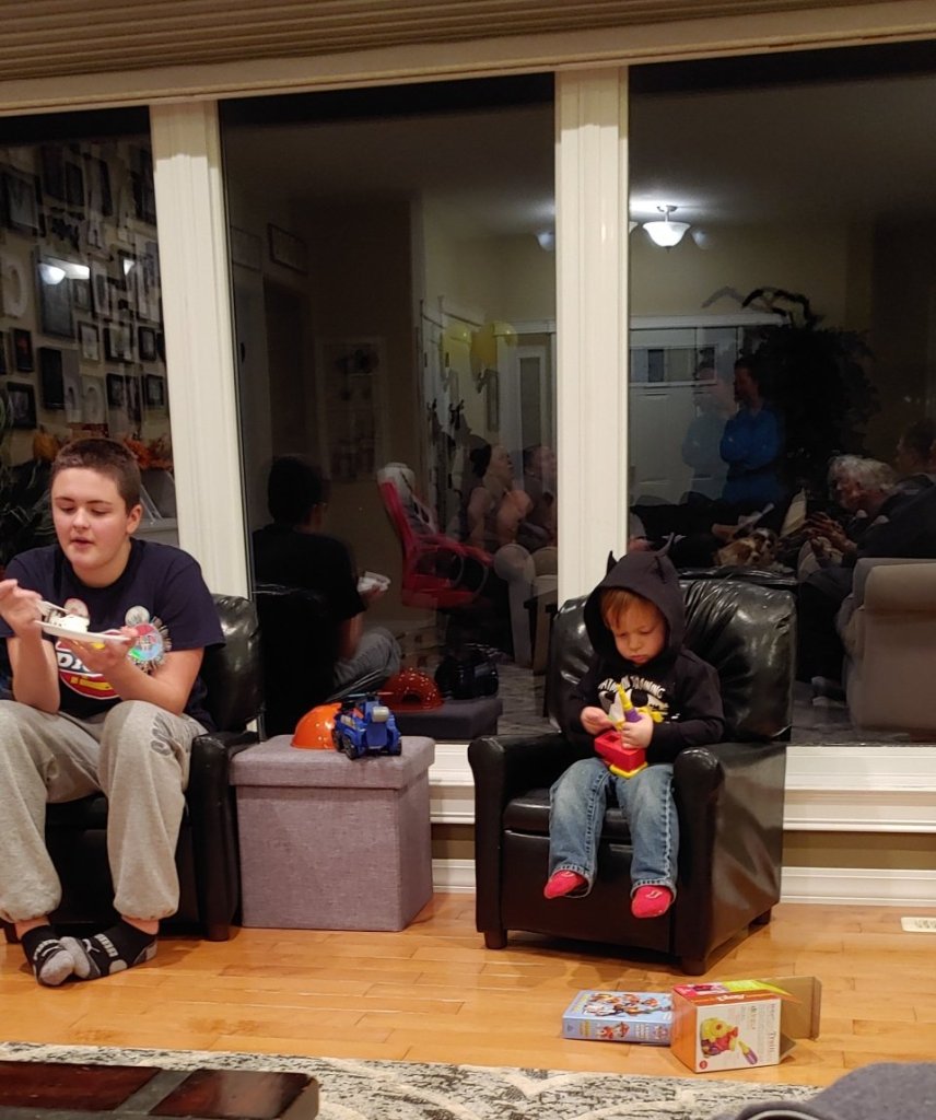 Last night we had granddaughter Genie and her boyfriend Alex/Ben over. We enjoyed our Christmas turkey supper, topped off with a peanut butter cheesecake to celebrate Genie’s birthday (she will turn 17 on December 24th – and she doesn’t eat peanuts 🤦- I made her a mug cake and dressed it up for the occasion).