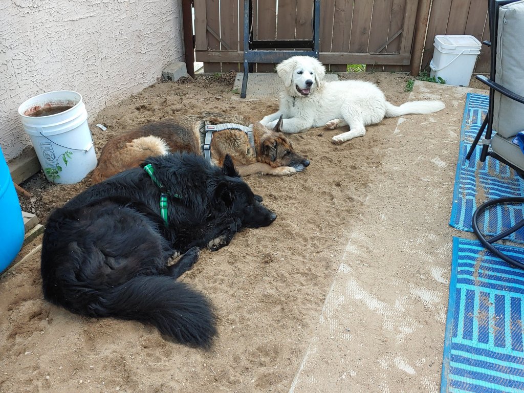This was after they arrived. π€£π€£π€£. I can hear Dan out back recleaning the back patio as we speak.Heidi appreciated the nice cool sand.King – The first pure black German Shepherd that I have ever seen and he is GORGEOUS!Molly and King went hard.And rested frequently!