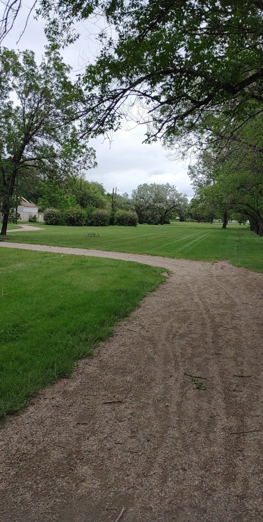 I love this little park. It is not particularly noteworthy. It is just a couple of acres of greenspace – grass, trees, a meandering gravel path, a rustic little bridge and one ball diamond. I seem to be one of very few people who loves it, as I am typically alone there with my dog.