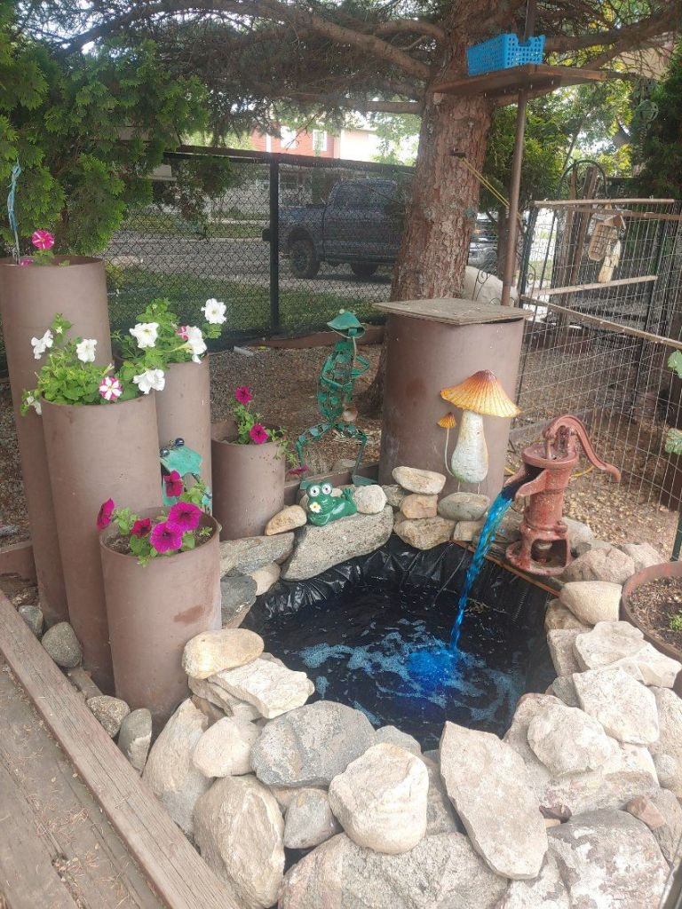 Speaking of creative expression, Dan finished our pond yesterday and even found some blue food dye for the water this year. 👍 💞