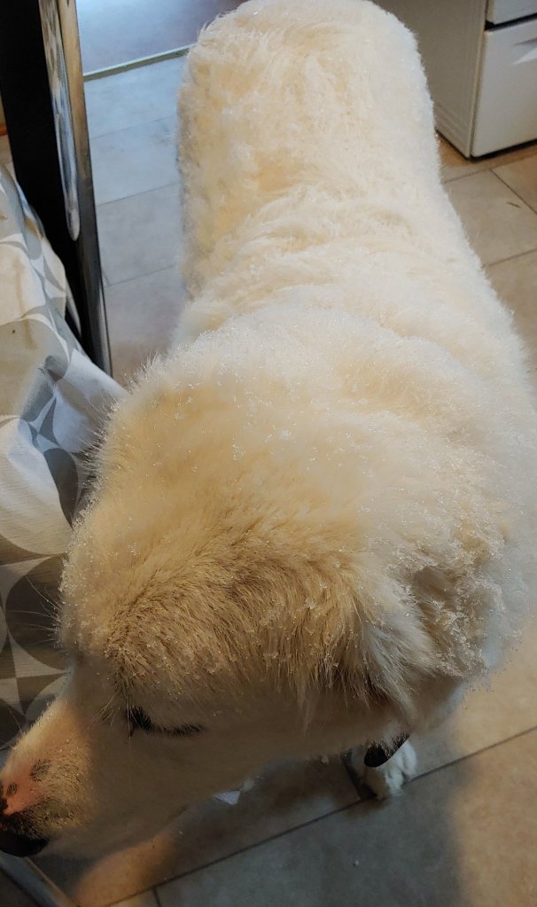 We went for our morning walk a while ago. The streets were relatively quiet. We crossed paths with one dog that Molly would have liked to interact with, but they both just wanted to play so it was not a big deal.