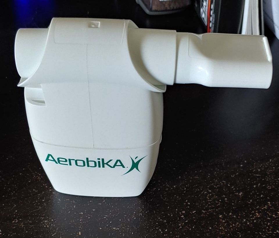 After supper and twenty minutes on our treadmill, I did my lung clearing with my Aerobika device. I take deep breath in and blow out which engages a flutter valve that vibrates and loosens the mucus in my lungs. In two years, my best effort generally involves one to two breaths before I have a coughing fit and start choking up large amounts of mucus. (Sorry, I know that sounds gross). Anyway, it is a long messy process.