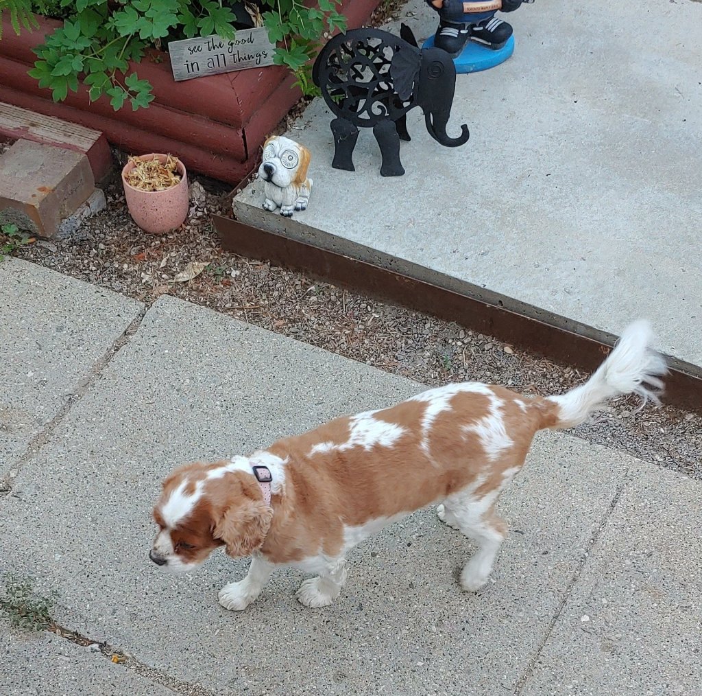 Molly is thriving despite the heat that she is unaccustomed to. Dan has been taking her to the park before it gets too warm out. Her friends have been going earlier than usual as well, so it’s all good. Yesterday, we took her for her annual vet checkup. She passed every test with flying colors. Her weight is a perfect ninety three pounds and her teeth are clean and white. (Yay Greenies!)