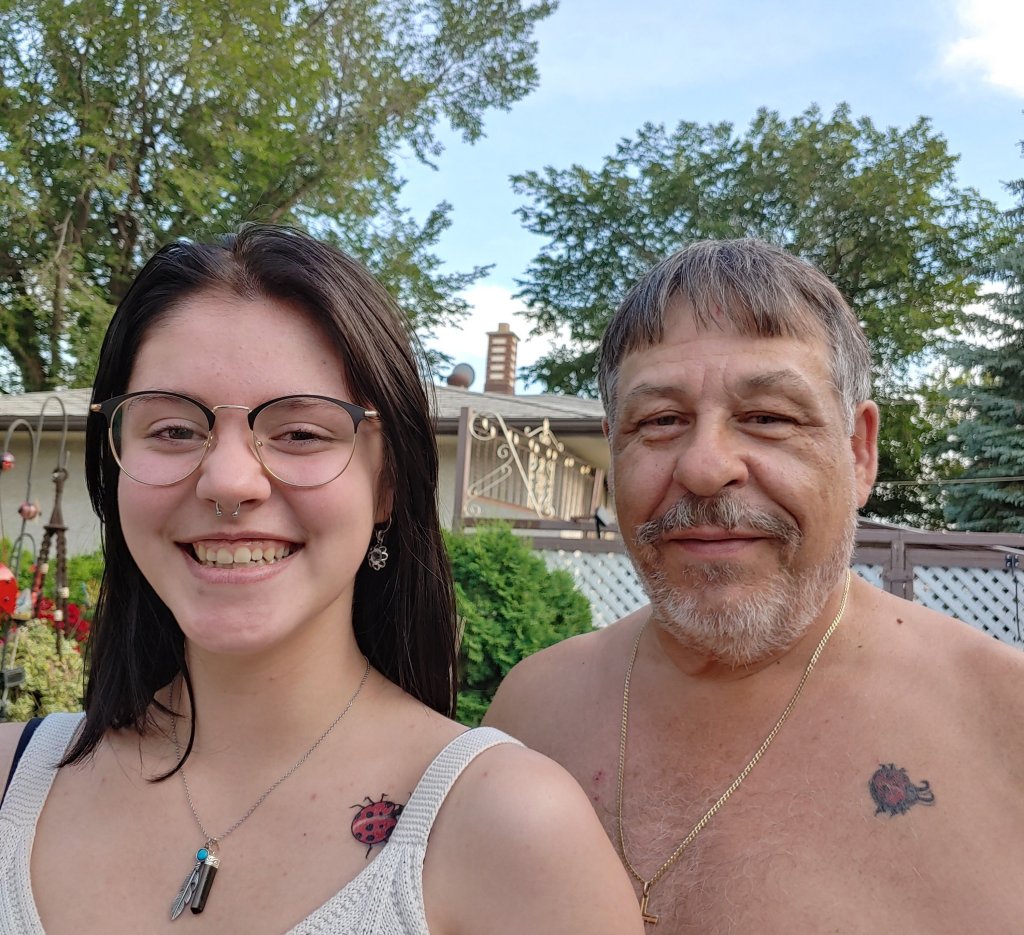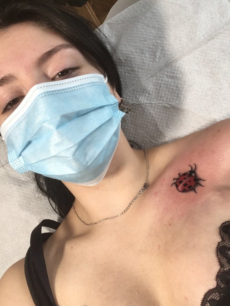 A couple of years ago, I was able to arrange for Genie to get her ladybug tattoo on her sixteenth birthday. Our tattoo artists do not typically work with anyone under eighteen, but my boss’s son agreed to do this one for Genie.