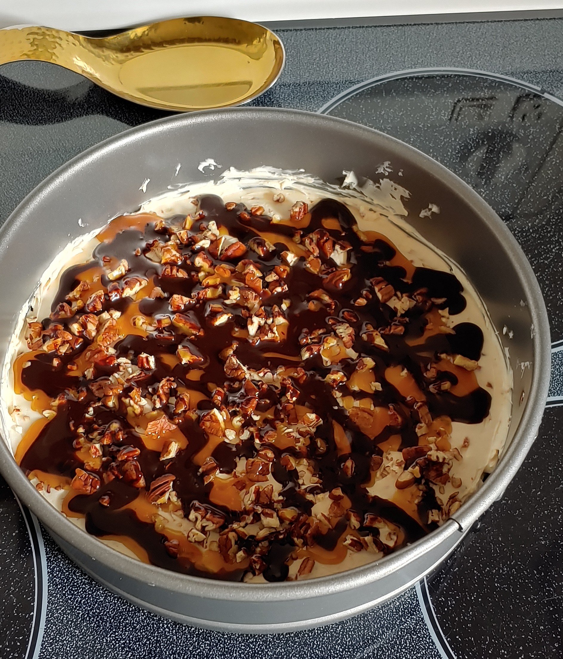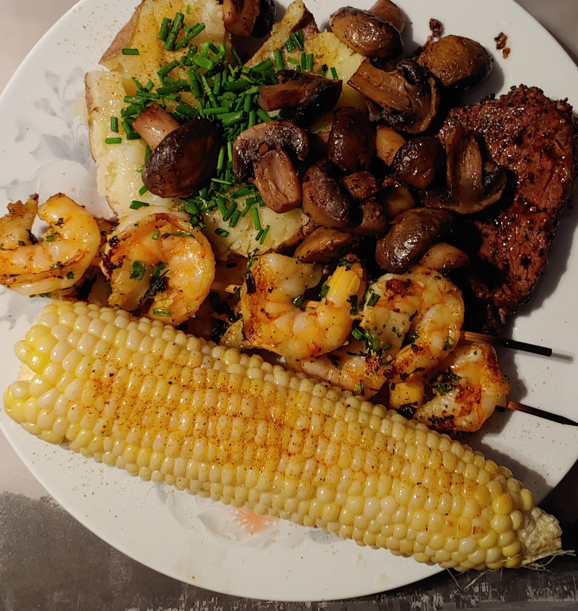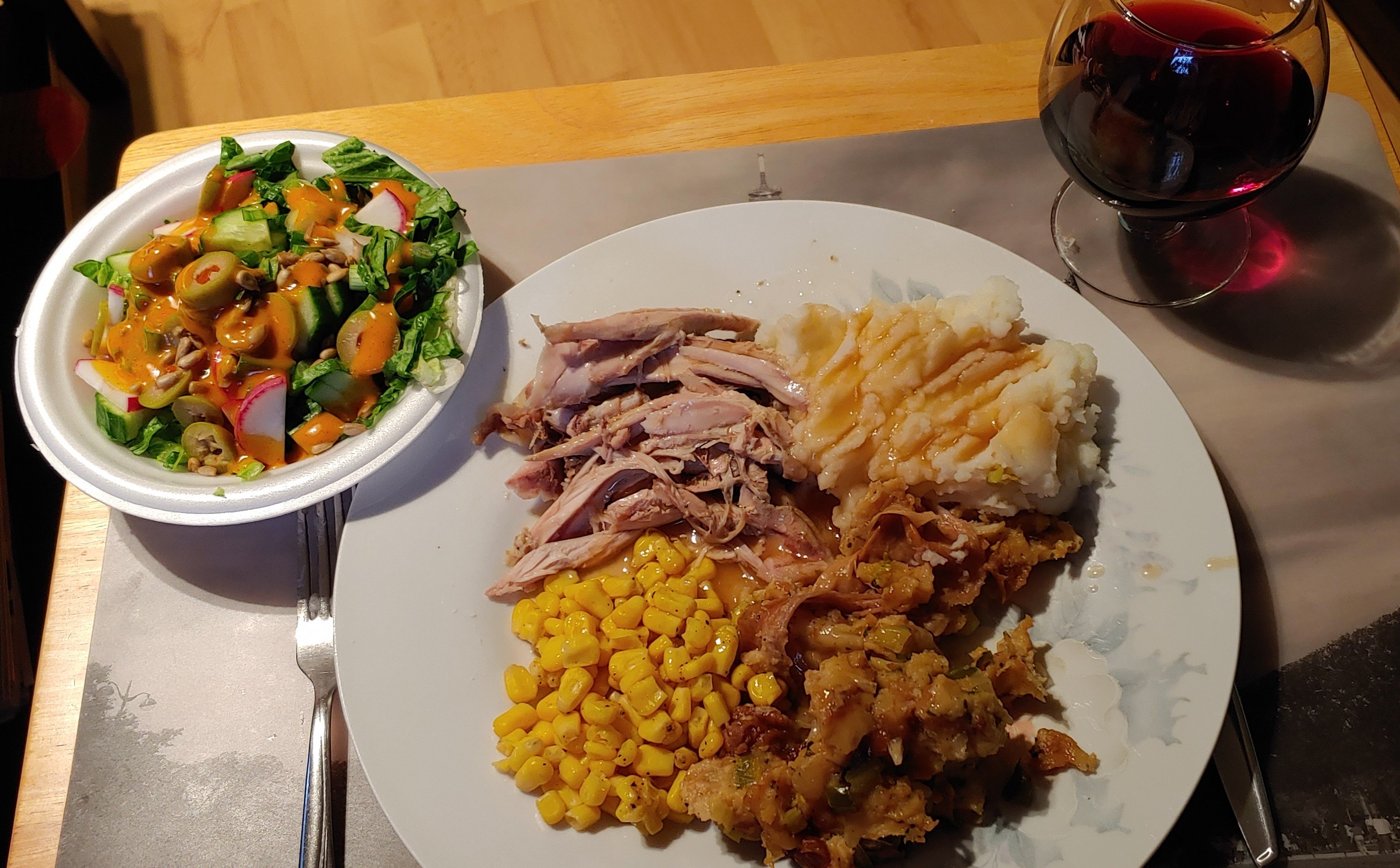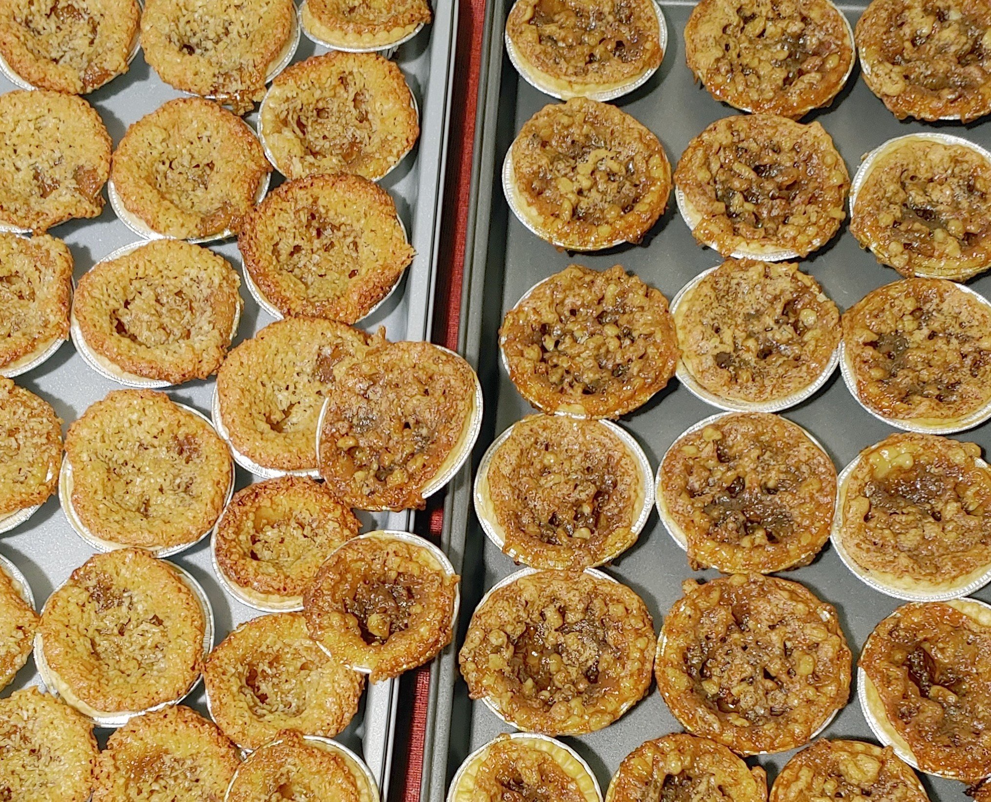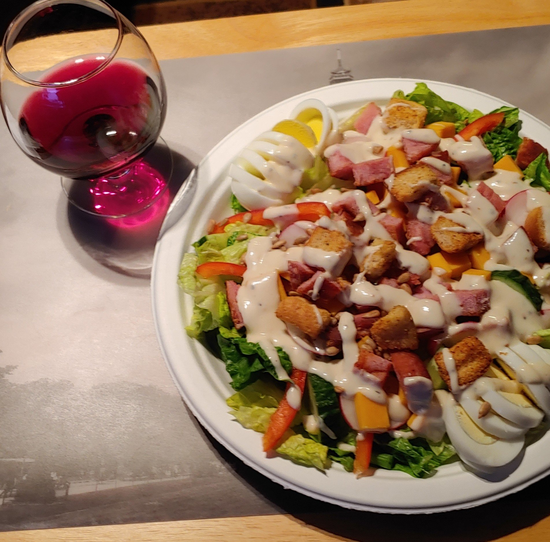 Makin’ Bacon! Five pounds of bacon! We eat a lot of bacon – especially on salad, since bacon has no calories if you put it on salad. 😉Spiced pork salad with homemade croutons. Elegant chef salad with wine. (It’s the wine that makes it elegant). Dan fired up the barbecue. His steaks are good but his seafood is phenomenal.Christmas supper – my favourite part of Christmas! (Or any holiday when I can have turkey). I love the dark meat! 🤶Ham supper – we eat so much asparagus! It is very good for a body and so delicious. Gnocchi stew. It’s like regular beef stew but I don’t have to peel the potatoes. 🙃Loaded nachos – what’s not to love about nachos? Son Dan puts bacon on his nachos and we use spicy hamburger on ours. Both versions are delicious!Last night’s supper (served at 2:30 PM) – chicken fajitas. I am thinking that if I do another challenge, it might be quick, easy, hearty meals to serve at off-times for SHIFTWORKERS. That is a challenge!Butter tarts – coconut on the left and walnut with raisin on the rightTurtle cheesecake – so sweet 😳Of course we have to make dedicated meals for Kat 🐕🦺. We make a big pan full and freeze it in weekly portion for her.