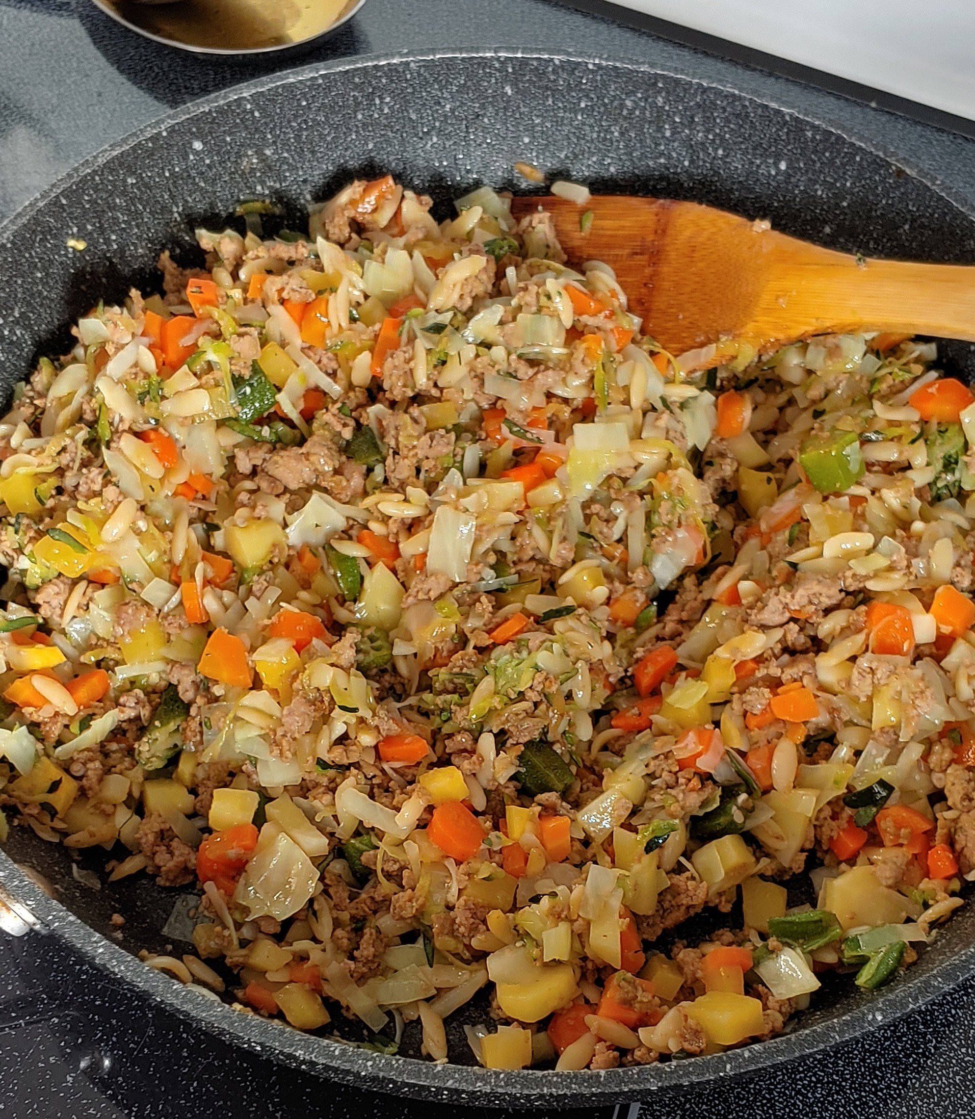 Dan and I made supper together last night, and yes he shredded oriental cabbage for the burritos. (The celery I took out didn’t make the cut… 🙄) Once the cabbage was cooked with the rest of the burrito filling, there was no trace of it. (I trust the nutrients remained? 🤔)