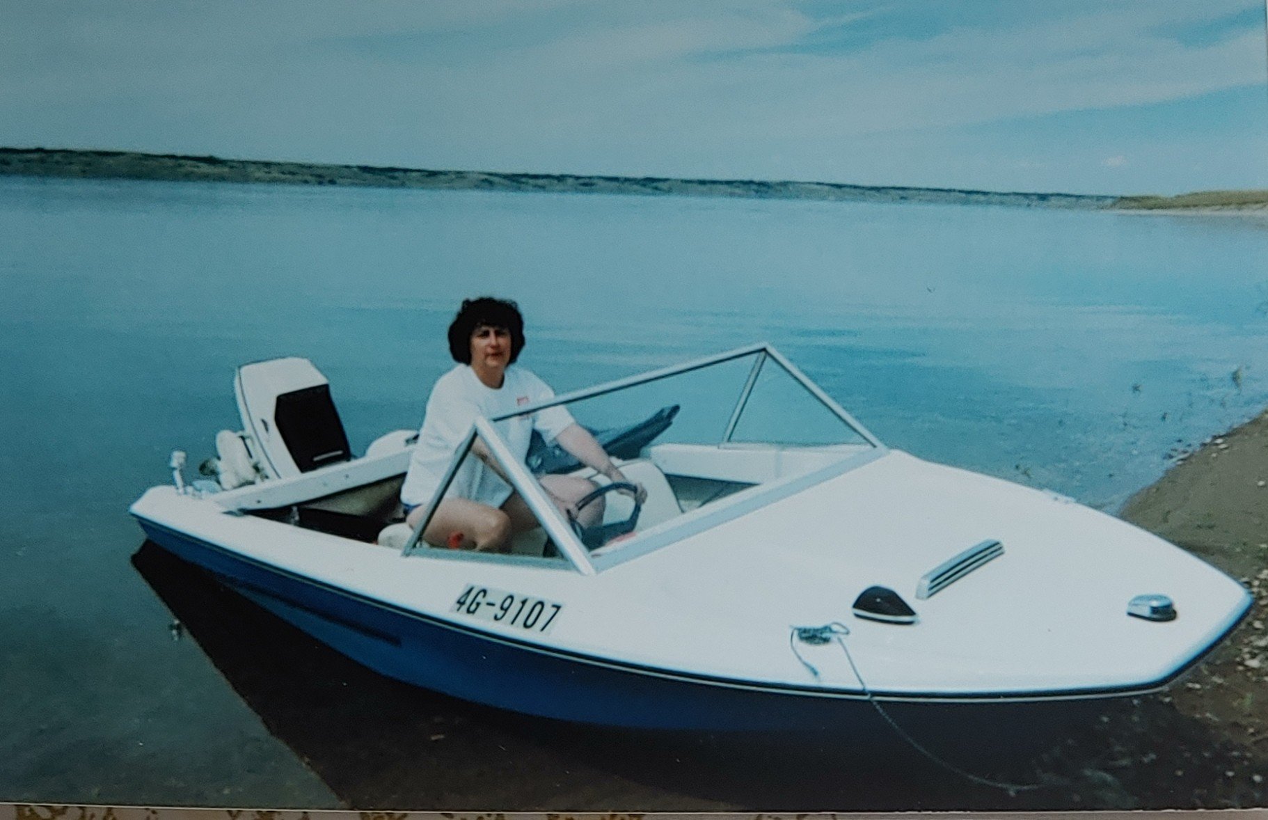 We went to a secluded, lakefront area on Lake Diefenbaker. When we got there, the mosquitos were so big and thick and angry at our intrusion that they were rocking Dan’s little Jeep. He left me cowering in the vehicle while he set out mosquito repellant torches and set up our sleeping tent, a net dining tent, and rustic wilderness washroom facilities. The next day, he put his little motor boat in the lake. We were comfortable, we were alone, and the scenery was breathtaking. We had an amazing time. Dan took me out fishing. I didn’t catch anything except Dan’s hat and his fishing line. The week flew by. On the way home, we stopped at a small motel in Moose Jaw for a bath and a good air conditioned sleep in a real bed. It was heavenly! Especially the bathroom. It was pure white, bright, cool and sparkling clean. I could have slept in there.