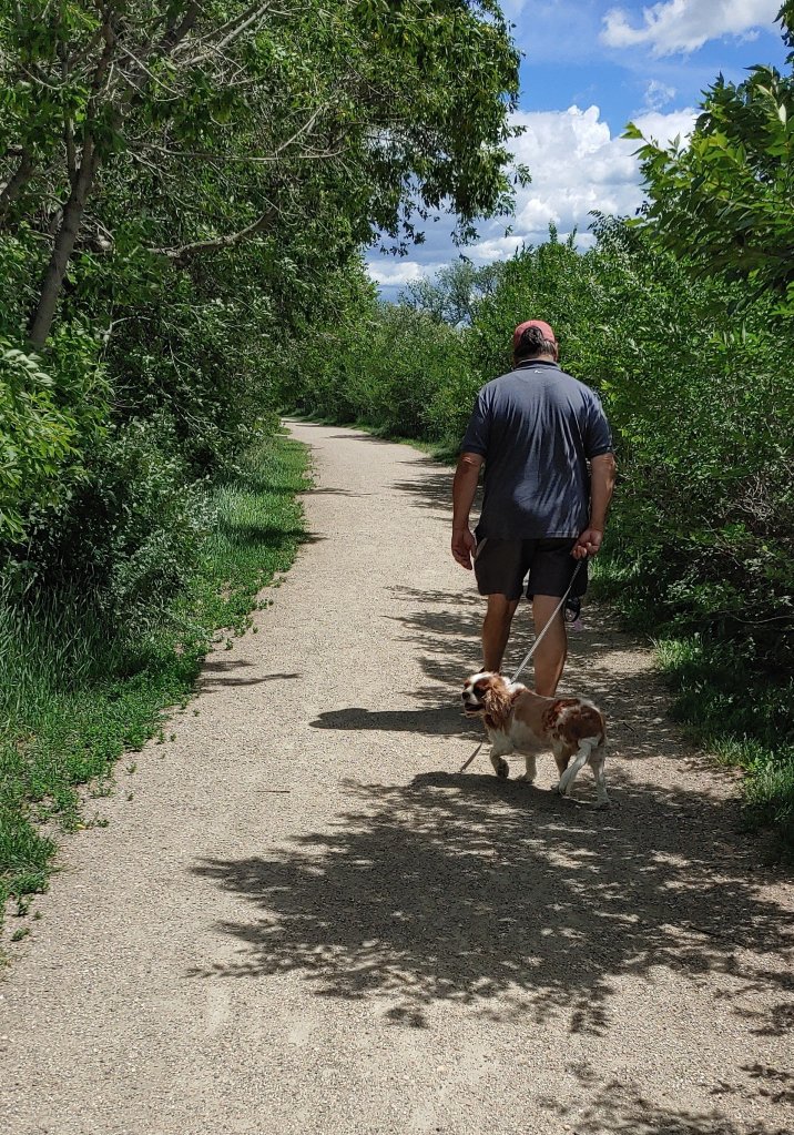 It is Sunday morning and a beautiful day to be alive! Being a Sunday, it is a rest from my more strenuous activities, but Molly and I began the day with another good walk. We only had one encounter, with a biker passing through the neighbourhood, but he did stop for a chat and the opportunity to give Molly a good petting – without being jumped on! 👍 We made 2.5 km before Molly was ready to get back home, take a splash in her pool, have a Sunday snack, and an extended nap.